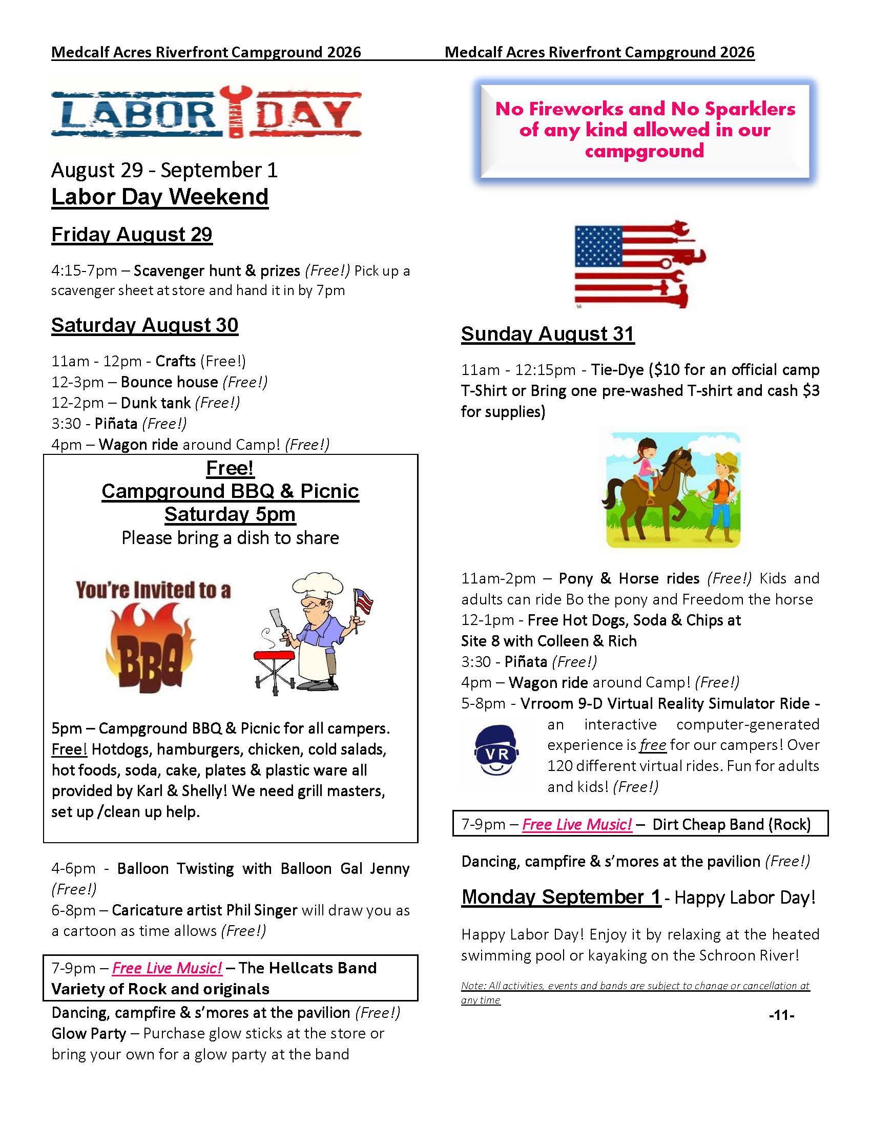 « Campground Activities and Calendar