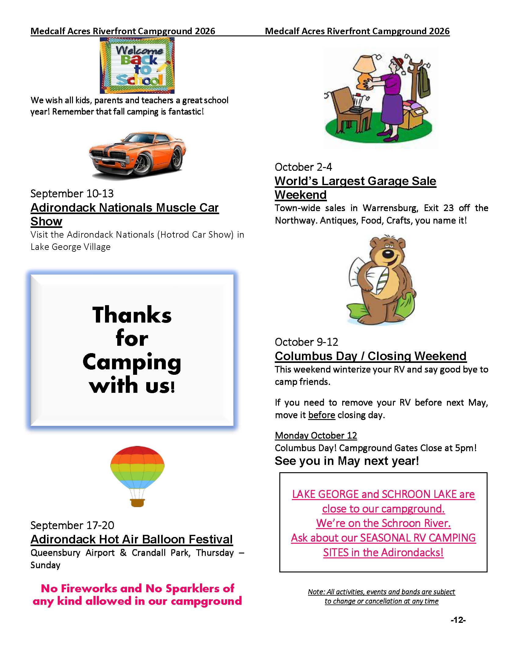 « Campground Activities and Calendar